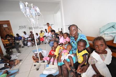 今年1月に大地震に見舞われたカリブ海の島国ハイチの北部でコレラが流行し、保健当局者は21日、過去数日間で1500人が感染し、既に135人が死亡したと語った。写真はサンマルクの医療施設で治療を待つ患者ら