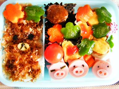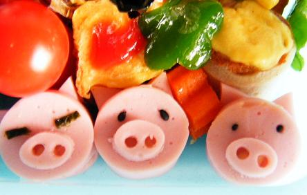 3匹の子ブタは魚肉ソーセージ。海苔、ゴマ使用。