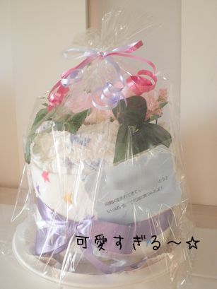 赤ちゃんグッズのレッグウォーマーも巻いてあって、リボンとお花。