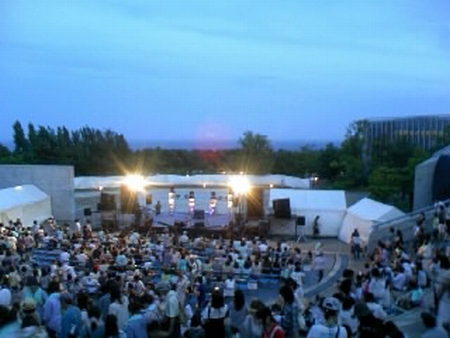 座席と、芝生と、ステージと、海があるだけの、素晴らしい場所でのライブ。遠くまできてよかった!