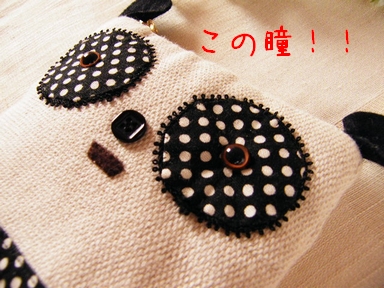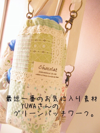 口の部分はゴムひも(ゴムが交換できるように結び目はリボン結びしてあります)