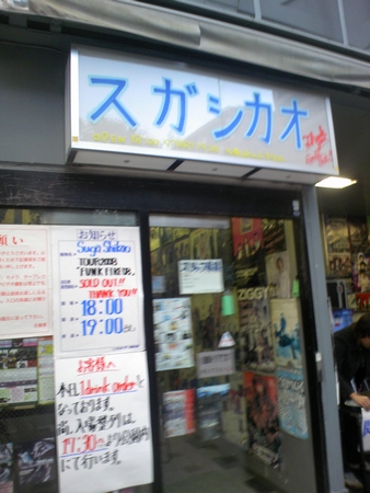 ↑手書きのカンバン。小さなライブハウスで1000人弱収容。