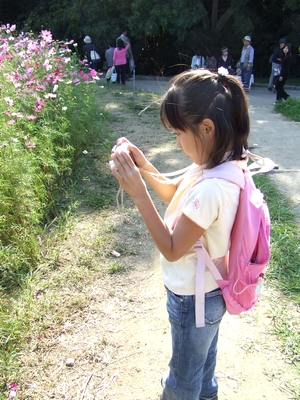 ↓こちらはママの真似をして花の写真を撮るMOCAさん。