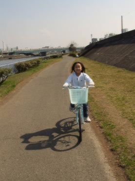22インチの自転車はまだまだ大きくてやっと両つま先が着くくらい。
