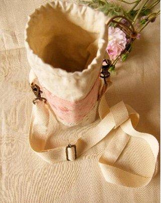 肩からかけられるように、綾織ひもで肩ひもをつくりました。