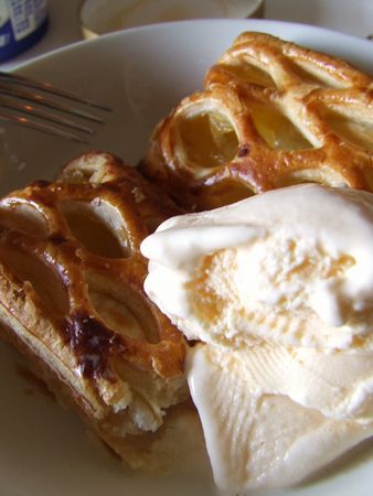 サックリと焼いたアップルパイとアイスクリームは王道だな、ありゃ。笑